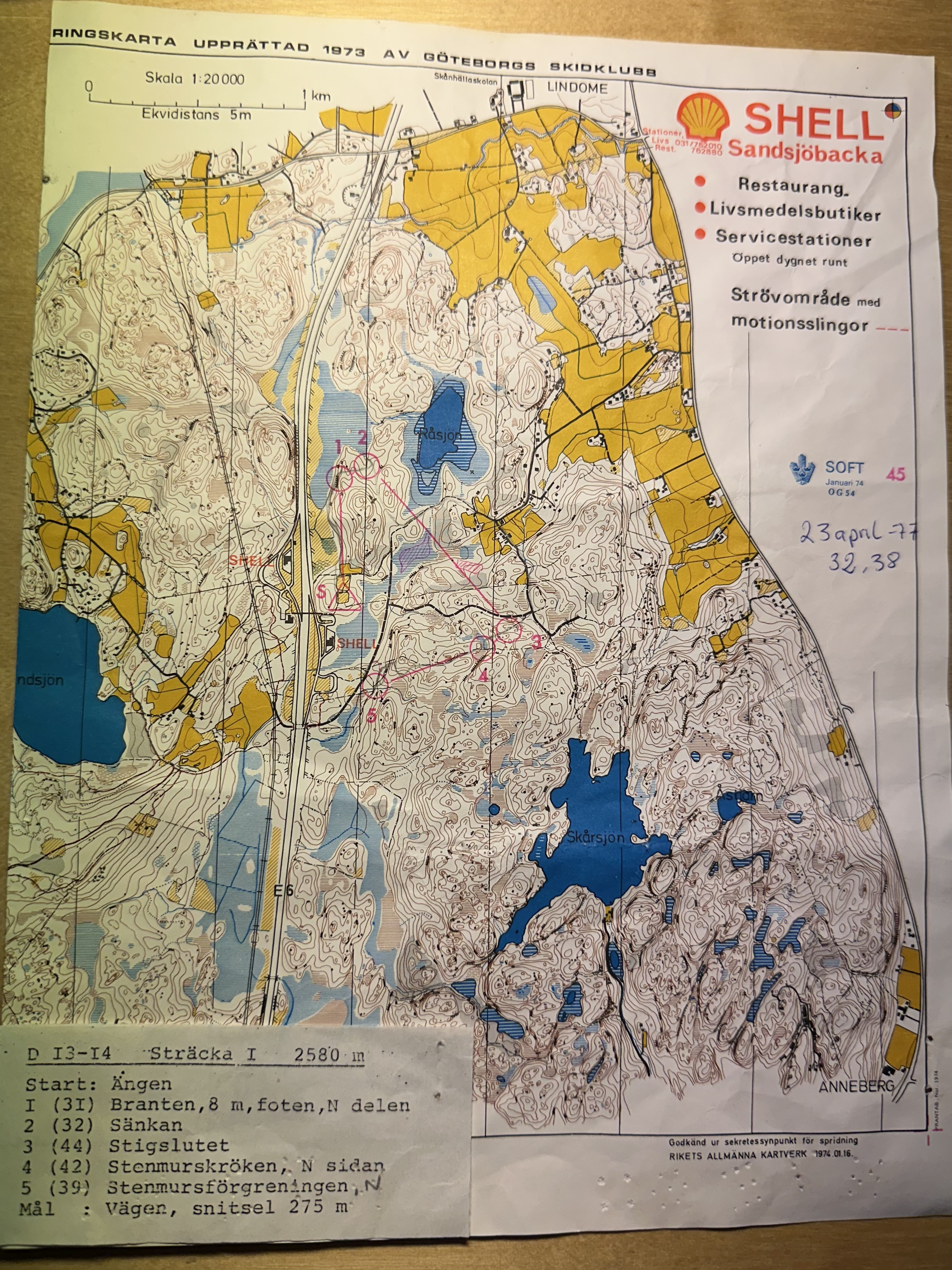 tävling där på en karta från 1973.